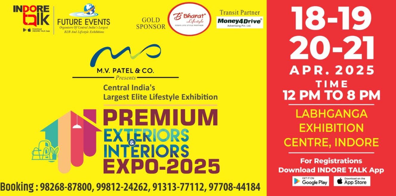 इंदौर: इंटीरियर और एक्सटीरियर डिज़ाइन इंडस्ट्री के नवीनतम ट्रेंड्स, अत्याधुनिक तकनीकों और नए प्रोडक्ट्स को प्रदर्शित करने के लिए प्रीमियम एक्सटीरियर्स एंड इंटीरियर्स एक्सपो-2025 का आयोजन एम.वी. पटेल एंड कंपनी और फ्यूचर इवेंट्स द्वारा किया जा रहा है। यह भव्य आयोजन 18 से 21 अप्रैल 2025 तक इंदौर के लाभगंगा एक्सिबिशन सेंटर में होगा। यह एक्सपो न केवल डिज़ाइन प्रोफेशनल्स और बिज़नेस ओनर्स के लिए, बल्कि आर्किटेक्ट्स, इंटीरियर डिजाइनर्स, बिल्डर्स और आम उपभोक्ताओं के लिए भी एक बेहतरीन अवसर होगा, जहाँ वे डिज़ाइन जगत के नवीनतम इनोवेशन को करीब से देख और समझ सकेंगे।