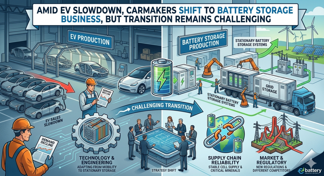 दुनियाभर में इलेक्ट्रिक वाहनों (EV) की मांग में आई सुस्ती के बीच ऑटोमोबाइल कंपनियां अब अपनी रणनीति बदलते हुए बैटरी स्टोरेज सिस्टम (Energy Storage Systems) की ओर रुख कर रही हैं। हालांकि यह बदलाव कंपनियों के लिए एक नया अवसर लेकर आया है, लेकिन इसे लागू करना काफी महंगा और जटिल साबित हो रहा है।