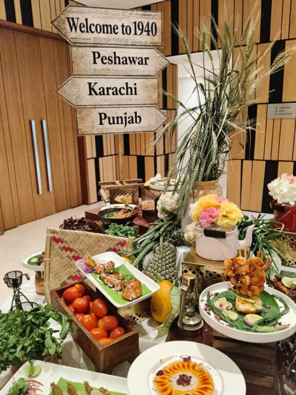 प्रमुख व्यंजनों में नॉन-वेज़ सेक्शन में पेशावरी चंदन कबाब, चपली कबाब, मटन सीख कबाब, मलाई प्याज़ा मुर्ग, मुर्ग काली मिर्च टिक्का, लाहौरी फिश टिक्का, फिश अमृतसरी,मटन बुर्रा, पेशावरी चपली कबाब| वहीं वेजिटेरियन विकल्पों में गुलनार पनीर टिक्का, मल्तानी पनीर के परचे, अचारी खुम्ब के तिनके, अमृतसरी सोया चाप, हरा भरा कबाब, अखरोट के कबाब, पंचरंगी दाल, लाहौरी दाल तड़का, सरसों का साग, दाल मखनी, राजमा रसीला और सिंधी कढ़ाई शामिल हैं। मिठाइयों में गाजर और मूंग दाल का हलवा, ज़ाफरानी खीर, मालपुआ के साथ रबड़ी और रसगुल्ला परोसे जाएंगे, जो उस दौर की साझा मिठास और डेयरी परंपरा को दर्शाते हैं।