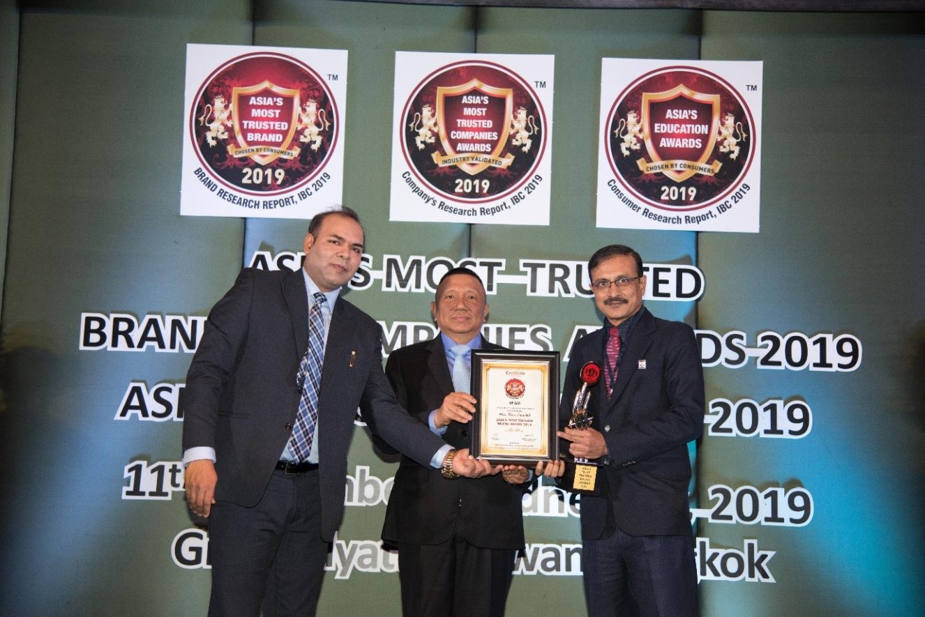 हाल ही में बैंकाक, थाईलैंड में आयोजित पुरस्कार समारोह के दौरान श्री दिलीप कुमार रे, महाप्रबंधक-बीडी एंड टीयू द्वारा ट्रॉफी और प्रमाण पत्र प्राप्त किया गया। थाई पुलिस मेजर जनरल कमांडर, जेनिथ सम्रांसमुद्रकित और डिप्टी कमांडर कर्नल मोनाची श्रीप्रसर्ट ने ट्रॉफी प्रदान की तथा श्री हेमंत कौशिक, प्रेसिडेंट, एशिया मोस्ट ट्रस्टेड ब्रांड अवार्ड काउंसिल और सीईओ, इंटरनेशनल ब्रांड कंसल्टिंग कॉर्पोरेशन, यूएसए द्वारा प्रमाणपत्र प्रदान किया गया।