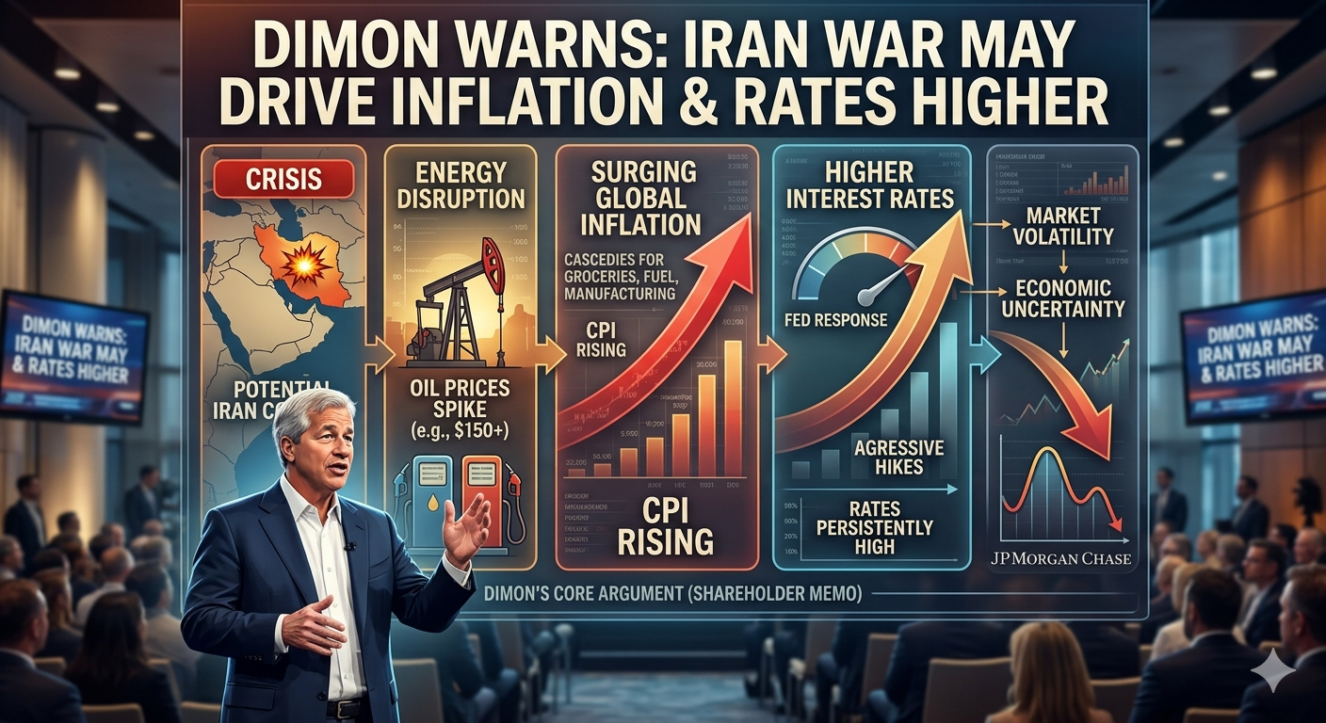रिपोर्ट्स के अनुसार, डिमन ने अपने वार्षिक शेयरधारक पत्र में कहा कि ईरान से जुड़े युद्ध के चलते तेल और अन्य कमोडिटी की कीमतों में तेज उछाल आ सकता है। इससे वैश्विक स्तर पर महंगाई का दबाव बढ़ेगा और केंद्रीय बैंकों को ब्याज दरें ऊंची रखने या और बढ़ाने के लिए मजबूर होना पड़ सकता है।