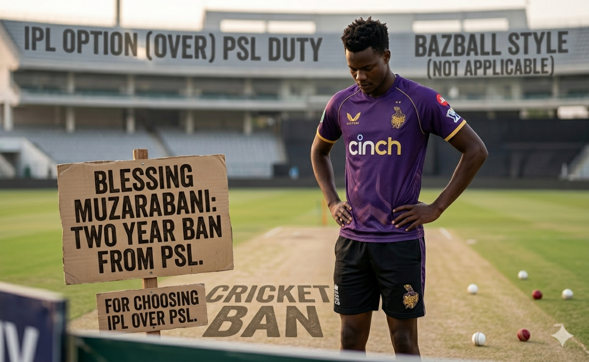 इंटरनेशनल क्रिकेट और फ्रेंचाइज़ी लीग्स के बीच बढ़ती प्रतिस्पर्धा के बीच एक बड़ा विवाद सामने आया है। जिम्बाब्वे के तेज गेंदबाज़ Blessing Muzarabani को पाकिस्तान क्रिकेट बोर्ड (PCB) ने दो साल के लिए पाकिस्तान सुपर लीग (PSL) से प्रतिबंधित कर दिया है। यह फैसला तब लिया गया जब उन्होंने PSL छोड़कर इंडियन प्रीमियर लीग (IPL) में खेलने का निर्णय लिया।