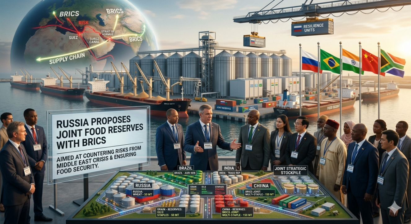 मध्य पूर्व में जारी संघर्ष और वैश्विक सप्लाई चेन पर इसके प्रभाव के बीच Russia ने एक बड़ा प्रस्ताव रखते हुए BRICS देशों के साथ संयुक्त खाद्य भंडार (food reserves) बनाने की मांग की है। इस पहल का उद्देश्य संभावित वैश्विक खाद्य संकट से निपटना और आपूर्ति में आ रही बाधाओं को कम करना है।